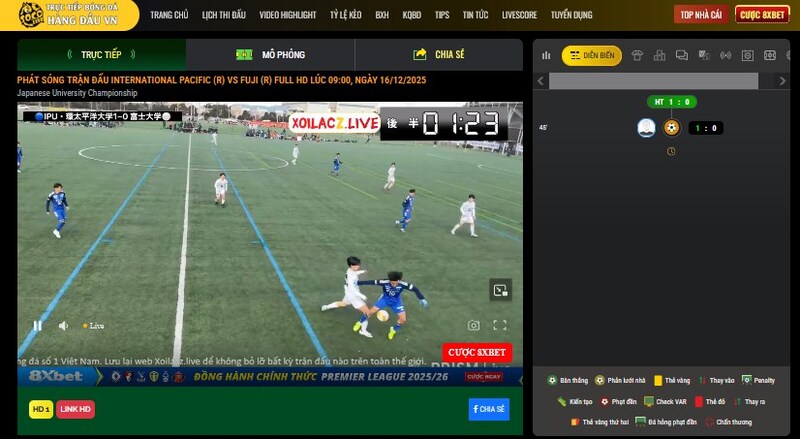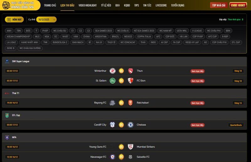Mình chỉ cần mở website, là thấy ngay các trận đấu đang diễn ra, các trận sắp đá trong ngày, đặc biệt là những giải đấu lớn quen thuộc. Với mình và bạn, những người đôi khi chỉ có vài phút rảnh để kiểm tra hôm nay có trận nào hay thì sự gọn gàng này thực sự rất đáng giá.