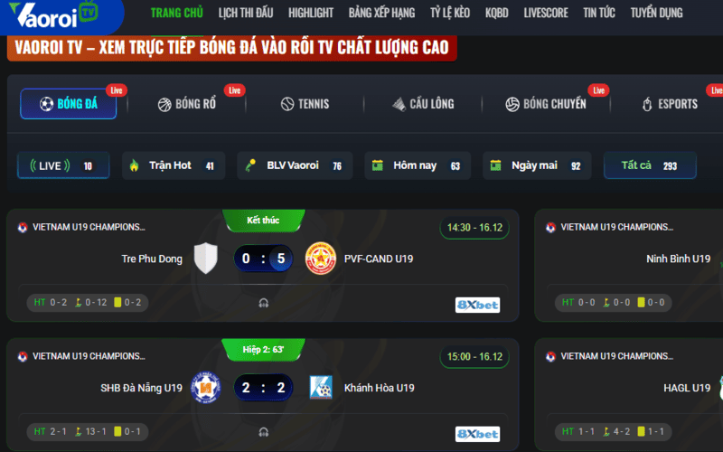 Website được thiết kế tối ưu, khoa học, giúp người dùng dễ dàng tìm kiếm trận đấu mong muốn theo lịch thi đấu, giải đấu, hoặc thời gian. Các banner quảng cáo được tối giản để không gây khó chịu, mang lại trải nghiệm duyệt web thoải mái.