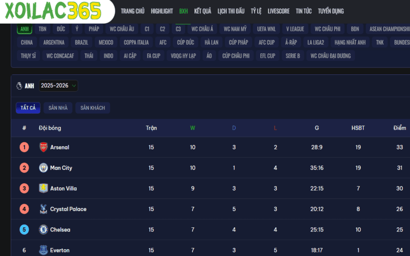 Xoilac Live – Địa chỉ cập nhật bảng xếp hạng bóng đá sớm nhất mọi giải đấu