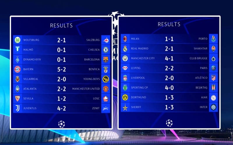 - UEFA Champions League (C1): Bảng xếp hạng vòng bảng, thứ tự các đội đi tiếp qua từng vòng knock-out.